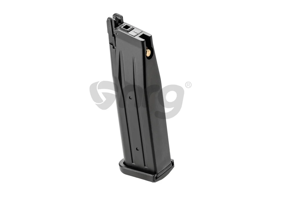 Incarcator produs de catre Golden Eagle pentru platforma Hi-Capa 3301/3303 . Acest incarcator poate fi folosit cu gaz Green Gas sau alte variante de gaz cu propietati asemanatoare.Este construit din metal iar gura de alimentare cu bile este din plastic. Capacitatea incarcatorului este de 25 de bile de 6mm.