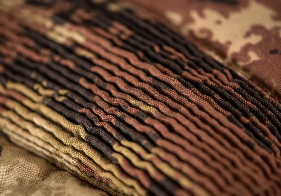 Pantalonii sunt prevazuti cu gaici pentru curea pe toata suprafata taliei, pentru a putea asigura ferm centura in ideea accesorizarii acesteia. In partea din spate a taliei pantalonilor exista o sectiune elastica pentru fixarea pantalonilor. Zona genunchilor este asigurata de un set de genunchiere rigide montate in compartimentul special al pantalonilor. Pentru evacuarea caldurii excesive, desupra genunchilor si deasupra mijlocului existe sectiuni din material poros. In spatele genunghilor exista chingi prevazute cu arici pentru fixarea pozitiei pantalonilor.