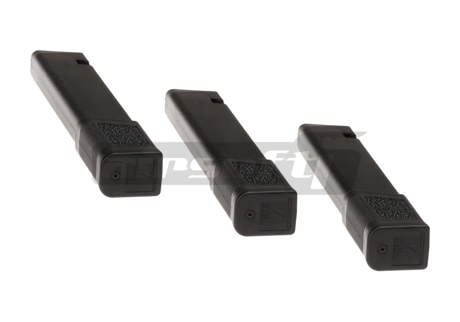 Set 3 incarcatoare de airsoft Mid Cap destinate platformelor Ronin TK.45 , fabricat de KWA. Aceste incarcatoare de airsoft au o capacitate de 120 de bile de 6mm. Principiul de functionare este bazat pe comprimarea unui arc intern in momentul alimentarii cu bile. Sunt construite din plastic ABS .