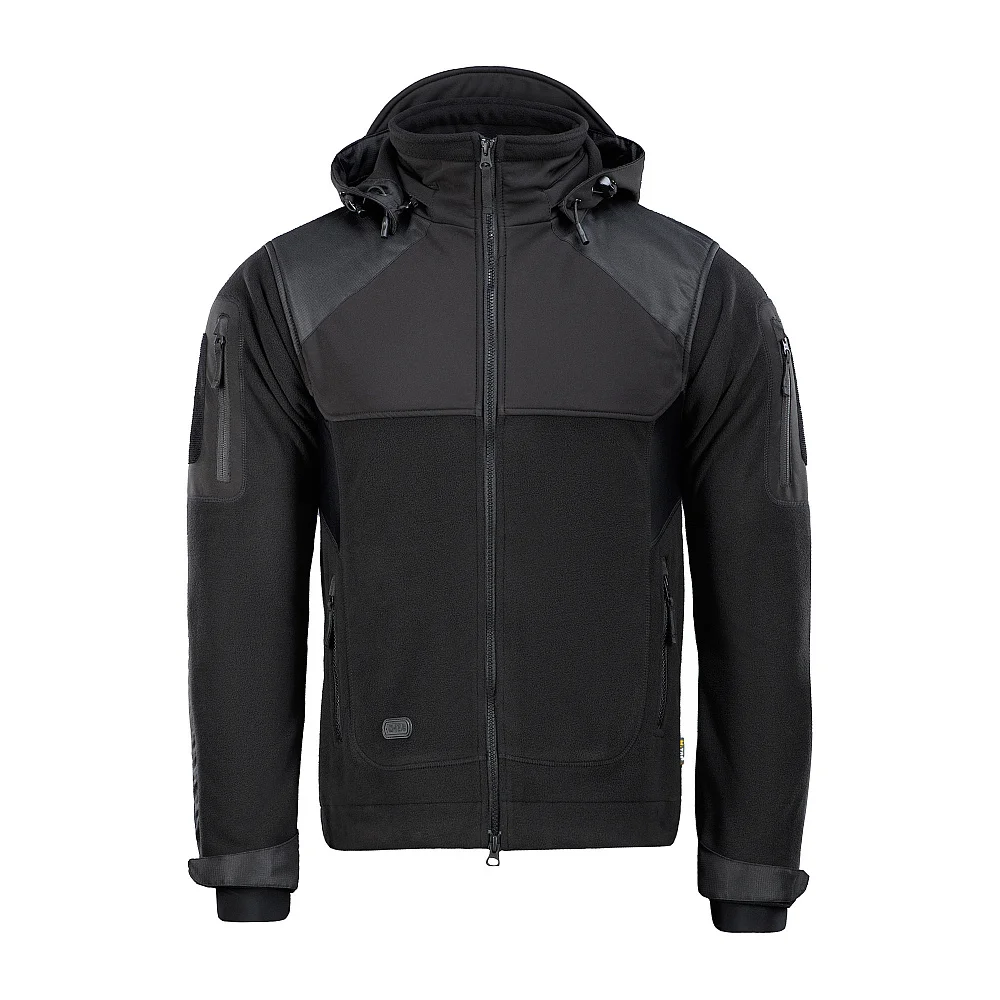 Jacheta fleece M-Tac Norman este potrivita pentru vremea rece datorita materialului WindBlock si insertiilor Softshell. Fabricata din poliester 100%. Structura grilei membranare WindBlock este proiectata pentru conditii de temperatura scazuta si cat mai scazuta astfel incat 80% din caldura corpului sa fie reflectata de la suprafata spre interior si doar 20% (caldura excesiva in timpul actiunilor active la temperaturi scazute) paraseste grila membranei. Majoritatea tesaturilor moderne cu membrana cu pulverizare de poliuretan de suprafata nu sunt proiectate pentru temperaturi extrem de scazute, datorita faptului ca poliuretanul se intareste la temperaturi scazute, ceea ce duce ulterior la intarirea tesaturii in ansamblu. Consecinta acestui lucru este „fosnetul” caracteristic atunci cand calatoriti. Tesatura termomembrana WindBlock nu foloseste pulverizarea poliuretanului pentru a proteja membrana, ci mai degraba o gramada densa, structurata in poliester (in interiorul si exteriorul membranei), care protejeaza membrana de efectele temperaturilor scazute, abraziunii (atat in interior, cat si in exterior) si creeaza un strat suplimentar de aer Windblock incalzitor pe dos spre exterior.