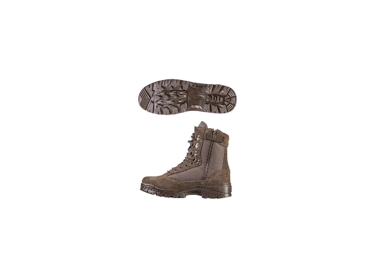 Bocanci cu fermoar fabricati de Mil-Tec. Designul si materialele utilizate ofera un confort deosebit indiferent de mediul in care sunt exploatati. Pielea naturala ofera o buna rezistenta impotriva uzurii dar si a posibilelor pericole ce pot aparea. Materialul textil utilizat permite o buna ventilare a interiorului. Talpa este prevazuta cu nervuri ce ofera o aderenta imbunatatita pe aproape orice suprafata. Bocancii sunt prevazuti cu fermoar si astfel pot fi usor indepartati in caz de necesitate, nefiind nevoie de dezlegarea siretului.