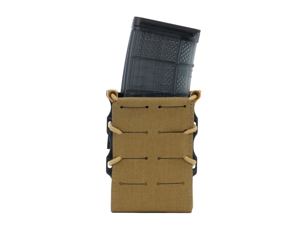 Un buzunar rapid pentru incarcatoare, conceput pentru aproape orice incarcatoare de AK / AR15 / M4 / M16 etc. O construcție simplă este realizată dintr-un laminat Cordura extrem de durabil, cu acoperire IRR și cadru kydex. Designul său sofisticat și materialele de înaltă calitate asigură robustețe mecanică și confort de utilizare. Acest buzunar permite accesul rapid la incarcatoare și face reîncărcarea mult mai rapidă. O caracteristică foarte importantă a buzunarului este sistemul de reținere reglementat care menține incarcatoarele în siguranță la locul lor. Acest sistem constă dintr-un șnur elastic reglabil și căptușeală anti-alunecare în interior. Partea frontală are două rânduri de sloturi compatibile MOLLE tăiate cu laser pentru a atașa alte echipamente sau pungi. Buzunarul poate fi atașat de vesta tactică, rucsac sau centură folosind două curele compatibile MOLLE.