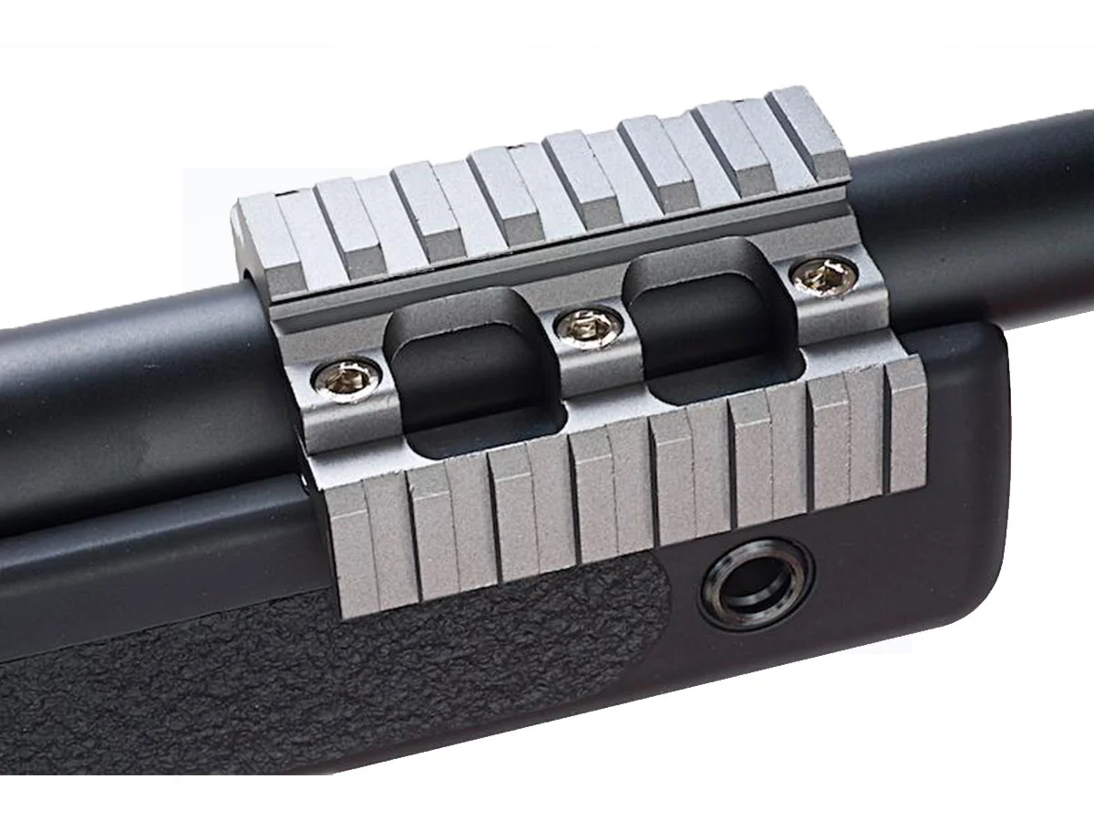 Ca pusca sa fie cat mai realista si ca tu sa ai o tinta cat mai buna, in partea superioara exista o sina RIS ce permite montarea unui dispozitiv optic. Deoarece producatorul asculta nevoile fiecarui jucator, a realizat o montura RIS speciala, prevazuta cu 2 segmente pe care poti atasa diverse accesorii.